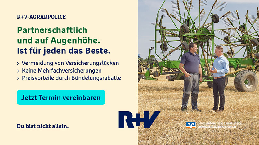 Anschließend stehen der Leiter der R+V Generalagentur BAG-Hohenlohe Raiffeisen eG, Tom Kopec, sowie der Agrarspezialist der Abteilung, Patrick Ilzhöfer für Fragen und zum Austausch zur Verfügung.
