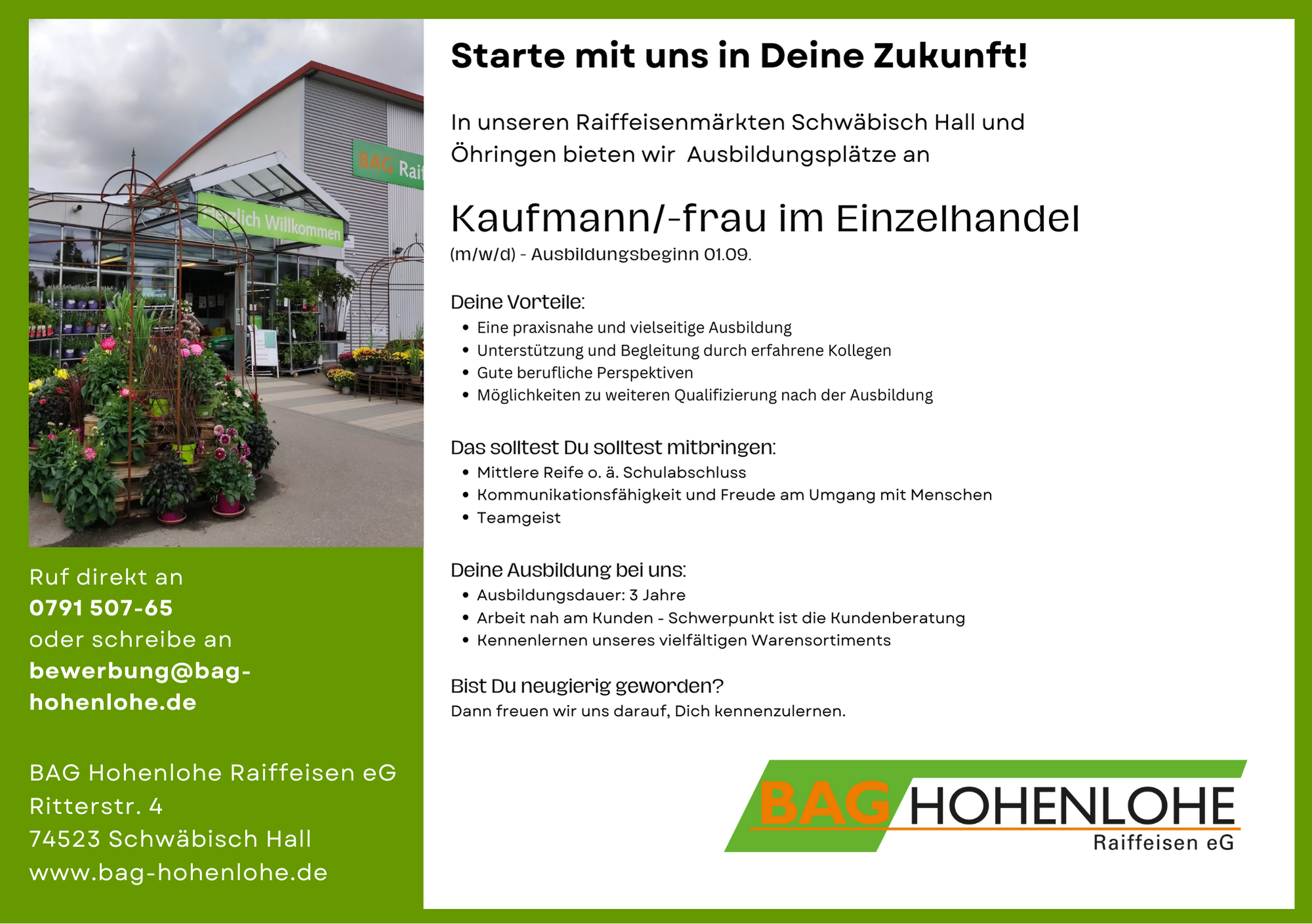 | Kaufmann (w/m/d) im Einzelhandel | Ausbildung | Raiffeisen Märkte |