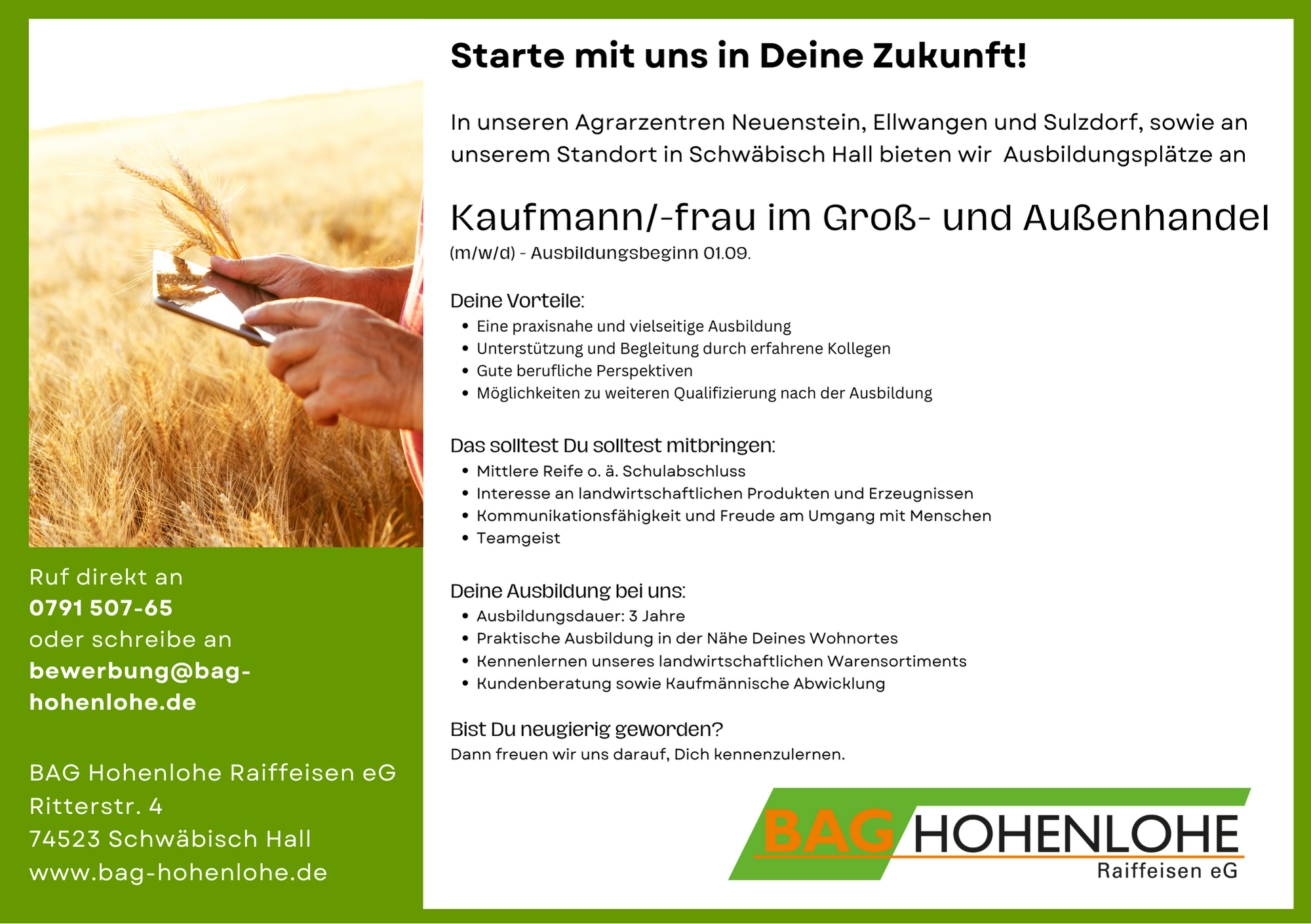 | Bachelor of Arts/BWL-Handel Branchenhandel Agrar (w/m/d) | Duales Studium | Schwäbisch Hall/Mosbach |