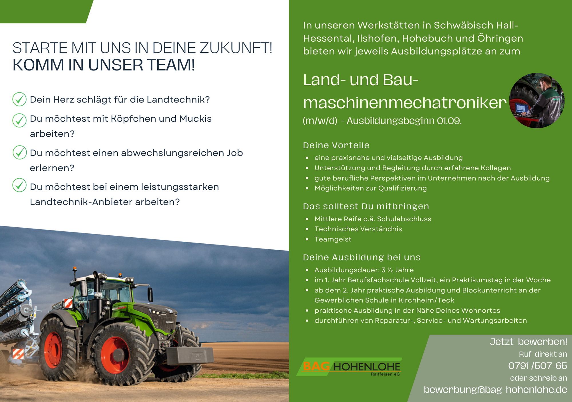 | Land- und Baumaschinenmechatroniker (w/m/d) - Schwerpunkt Landmaschinen | Ausbildung | Technik/Werkstätten |